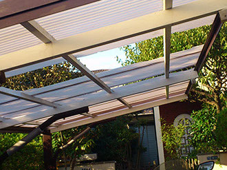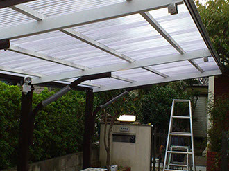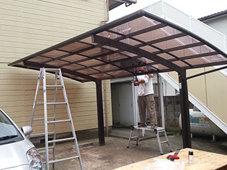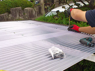 台風などで吹き飛んでしまったトタン、塩ビ製屋根など幅広く対応致します。